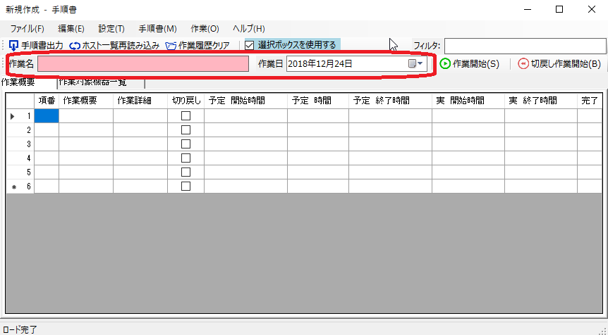「作業名」と「作業日」を設定してください。