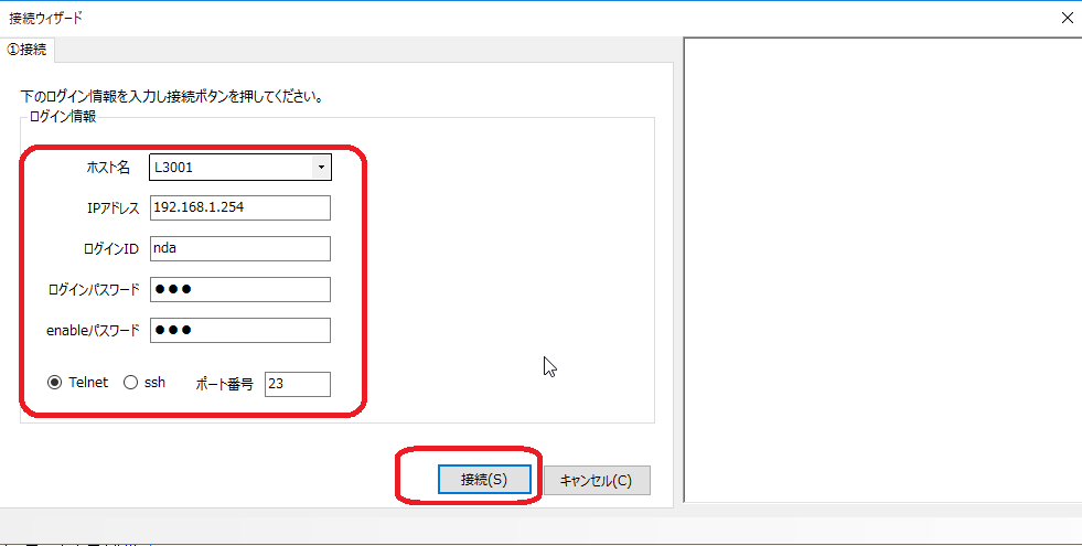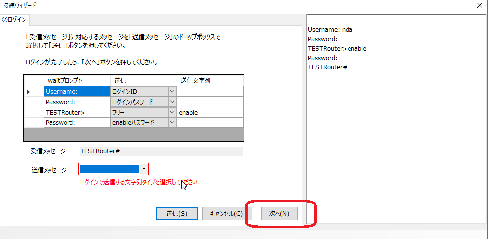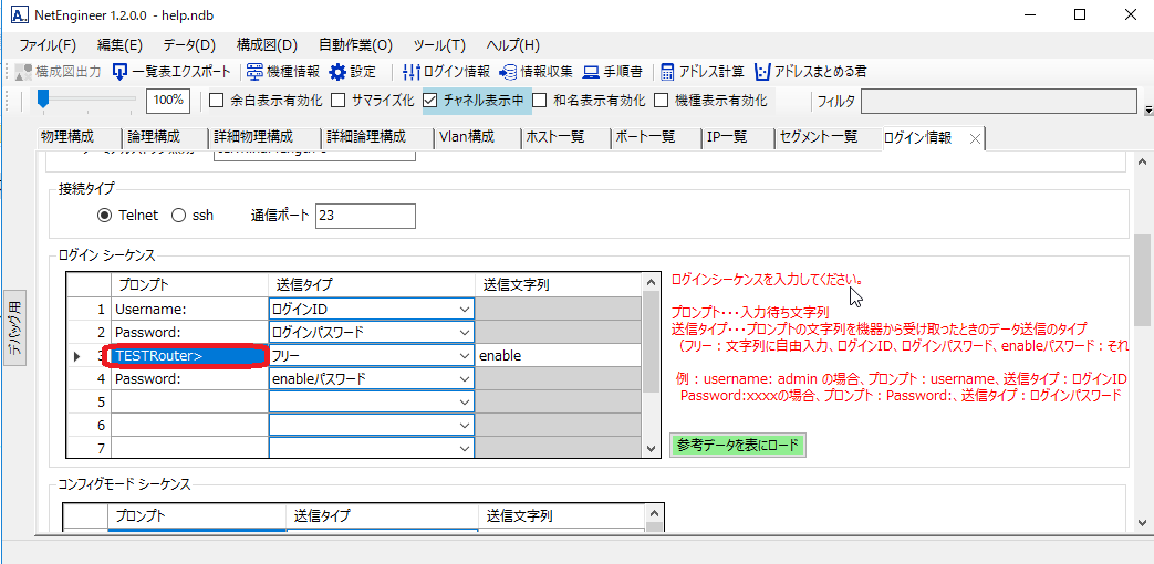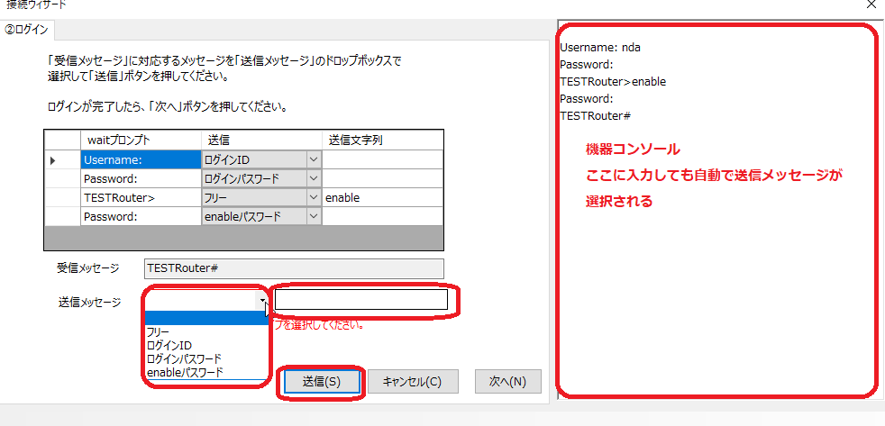 機器にログインして実際にコマンドを入力しながらログイン情報をインプットできます。