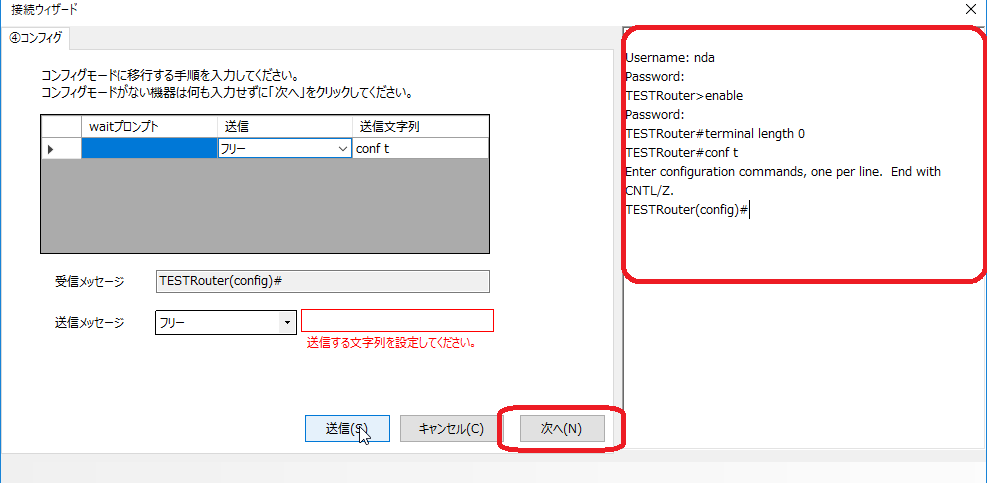 コンフィグモードに移行して「次へ」ボタンをクリックしてください。