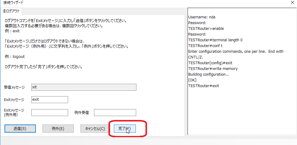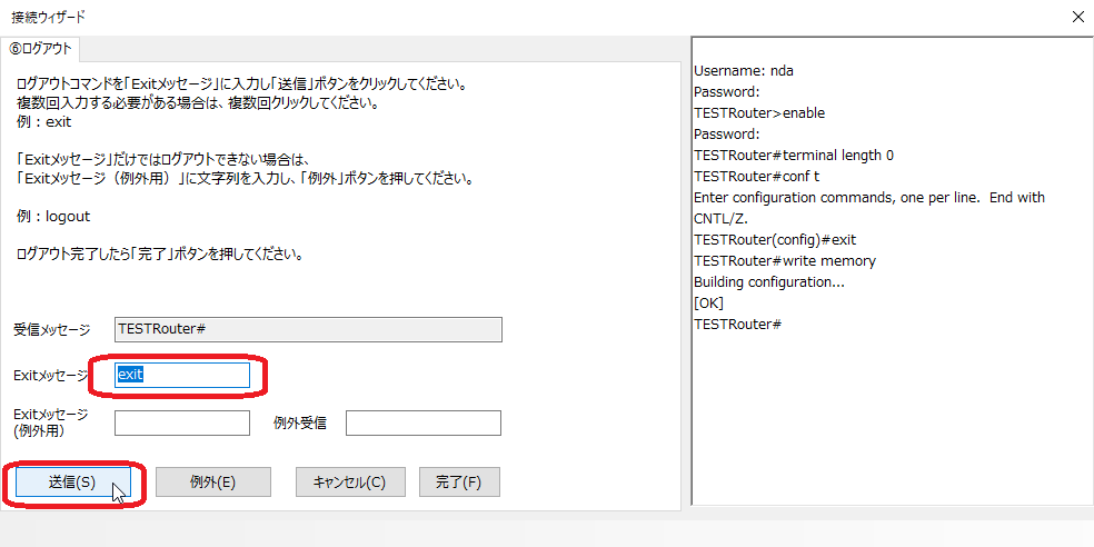 Exitコマンドを入力して「送信」ボタンをクリックしてください。