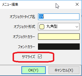 サマライズしたいオブジェクトのメニューを右クリック→「メニューアイテム編集」をクリックしてください。