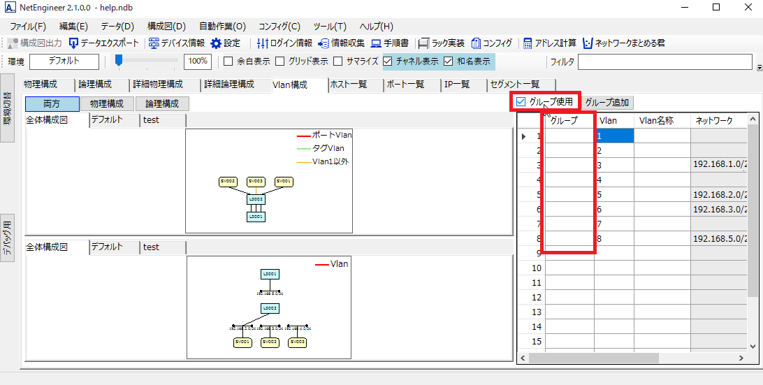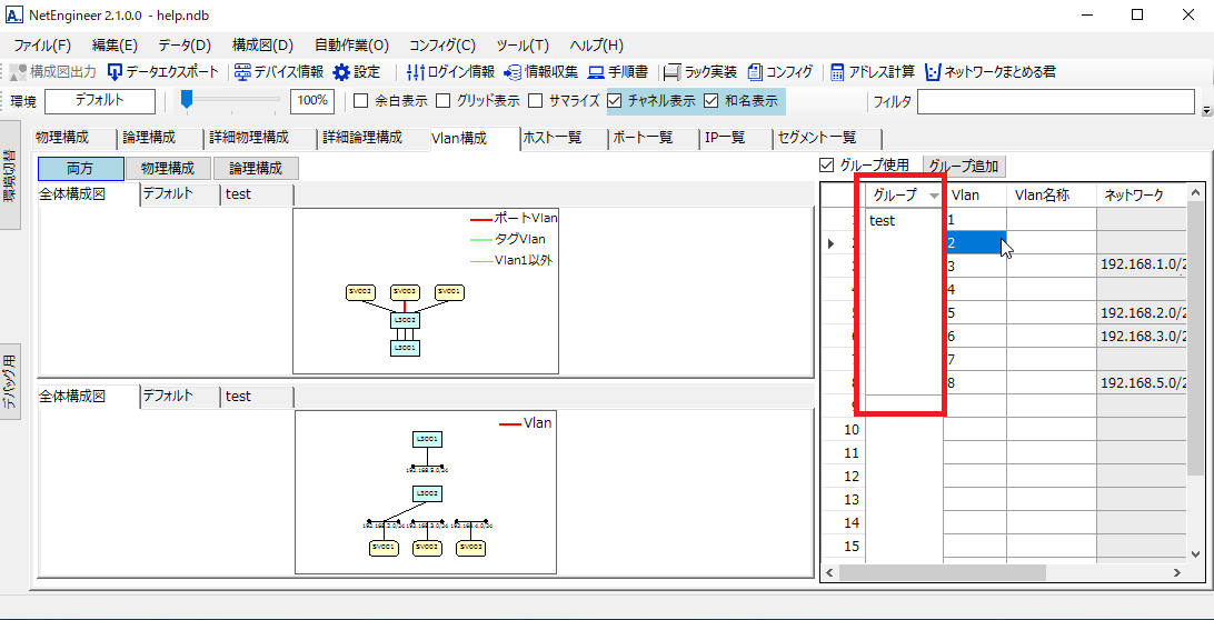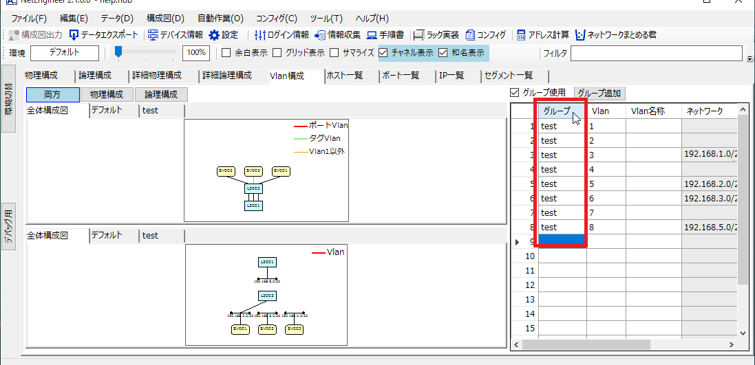 グループ追加をクリックするとグループを指定して、Vlanを追加できます。